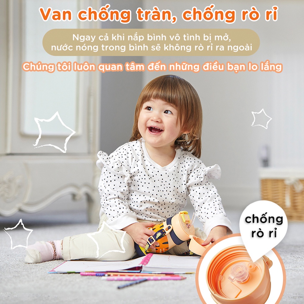 luôn tươi mát và nhờ đó bé yêu của bạn luôn vui vẻ và đủ nước suốt cả ngày. Khoang chứa được làm từ chất liệu Inox cao cấp nhất (316L), đặc biệt bền và đúc nguyên khối, khả năng phản xạ nhiệt tốt vào trong lòng bình, giúp tăng khả năng giữ nhiệt. Nắp đậy kín bằng nhựa nguyên sinh cao cấp với gioăng silicon chịu được nhiệt độ cao có khả năng giữ ấm lên đến hơn 8h và giữ mát từ 10h – 12h.