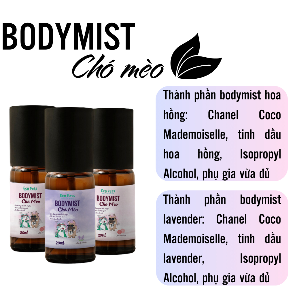 Bodymist xịt thơm khử mùi chó mèo ECOPETS 20ml – dưỡng da lông, lưu hương lâu, an toàn cho thú cưng