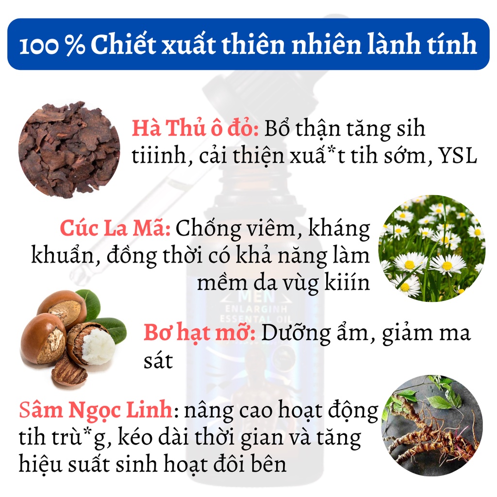 – Giúp quý ông tự tin, làm chủ mọi cuộc yêu, được bào chế từ các chiết xuất thảo dược tự nhiên.