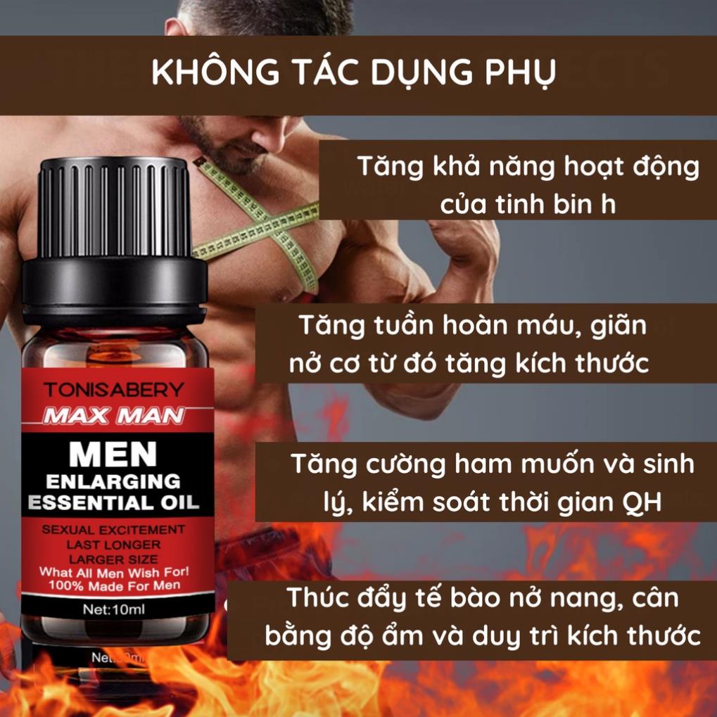 %- Tên sản phẩm: MAN ENLARGING ESSENTIAL OIL 10ml- Công nghệ Đức- Chứa thành phần tự nhiên như đinh hương, dầu jojoba, dầu macca, dầu xuyên tiêu …..- Kiểu dáng: lọ tinh dầu- Dung tích: 10 ml.Cải thiện chức năng s.i.n.h lý nam giới, giúp làm tăng ham muốn, sung mãn hơn trong mỗi cuộc yêuLàm tăng khả năng c.ư.ơ.ng cứng nhanh hơn, kéo dài hơn.Không bị teo lại sau khi ngừng sử dụng to nhanh cậu bé có thể đến 18cmLàm da cậu bé mềm mướt để cuộc yêu cho các chị em không bị đau rát- Giúp quý ông tự tin, làm chủ mọi cuộc yêu, được bào chế từ các chiết xuất thảo dượᴄ tự nhiên.Đặc tính lành tính, an toàn, đem lại hiệu quả cao cho người dùng trong suốt thời gian sử dụng.HƯỚNG DẪN SỬ DỤNGBước 1: Rửa sạch tay và duong vậtBước 2: Nhỏ 1 lượng vừa đủ dung dịch vào tay hoặc duong vậtBước 3: mɑssage 2-3 phút cho đến khi dung dịch được hấp thụ Sử dụng đều đặn hàng ngày